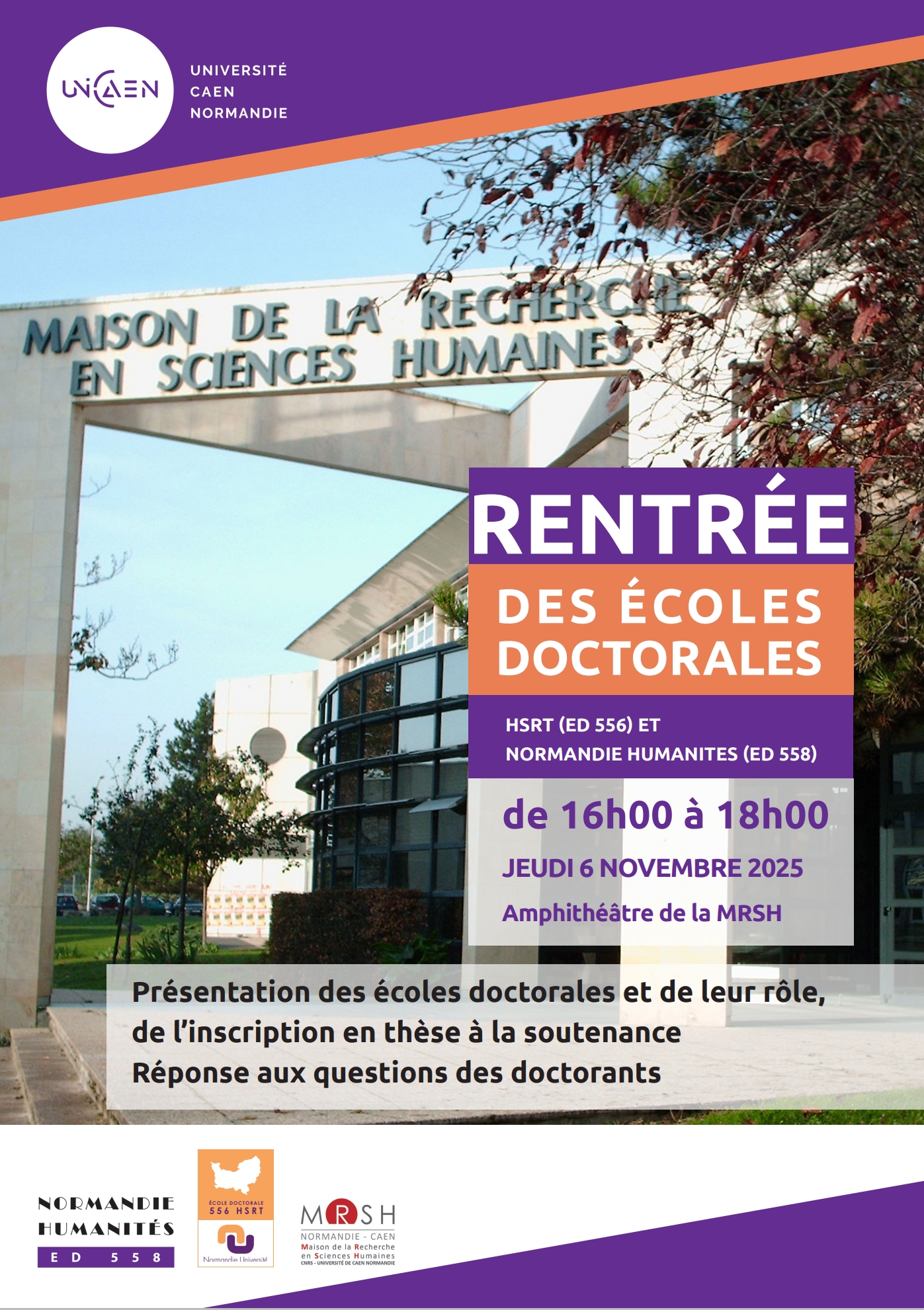 Rentrée des écoles doctorales HSRT et Normandie Humanités le jeudi 06 novembre 2025 de 16h00 à 18h00, amphithéâtre de la MRSH.